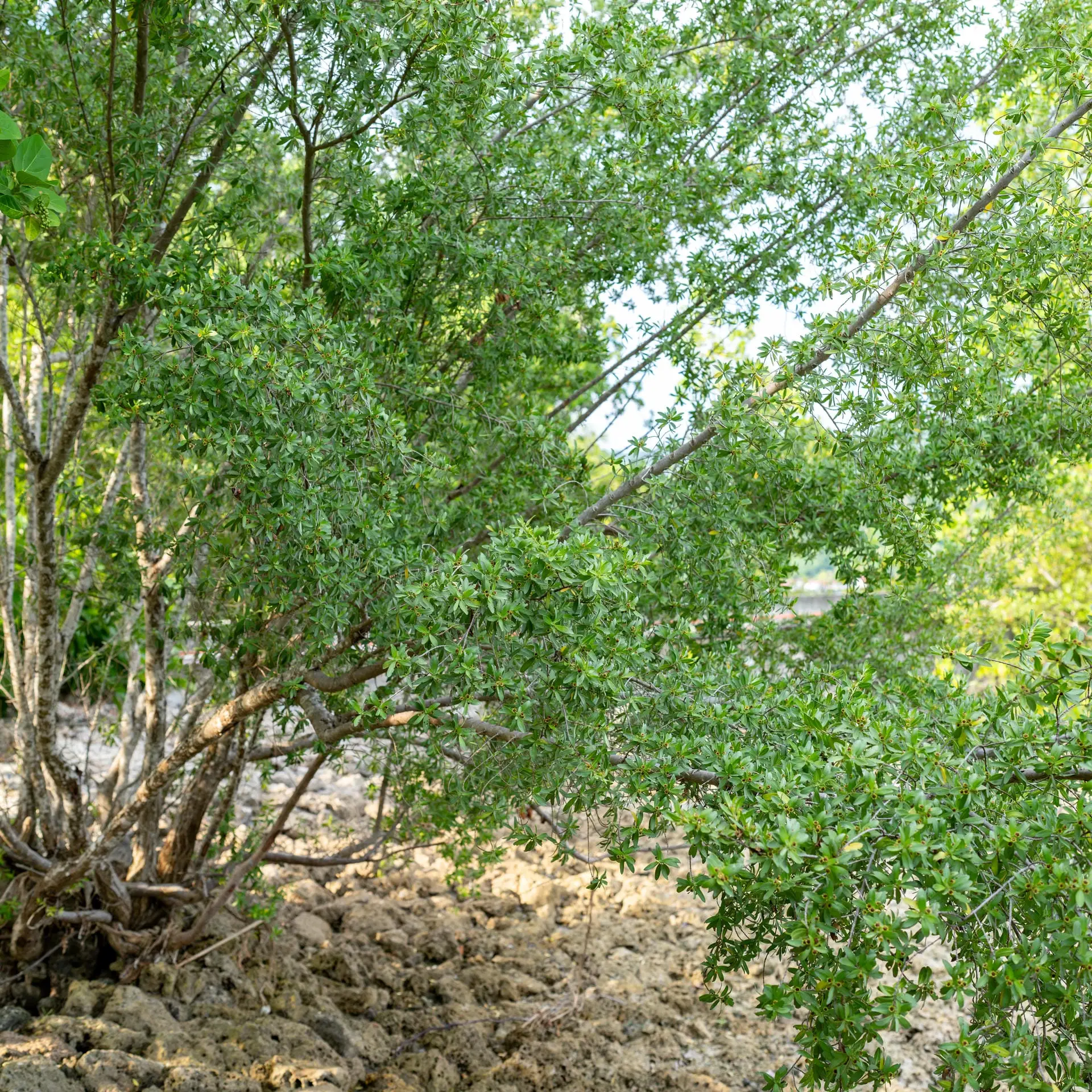 Along the island’s edge, mangrove forests form a powerful natural defense. Their intricate root systems stabilize the shoreline, reduce erosion, and act as buffers against waves and changing tides.